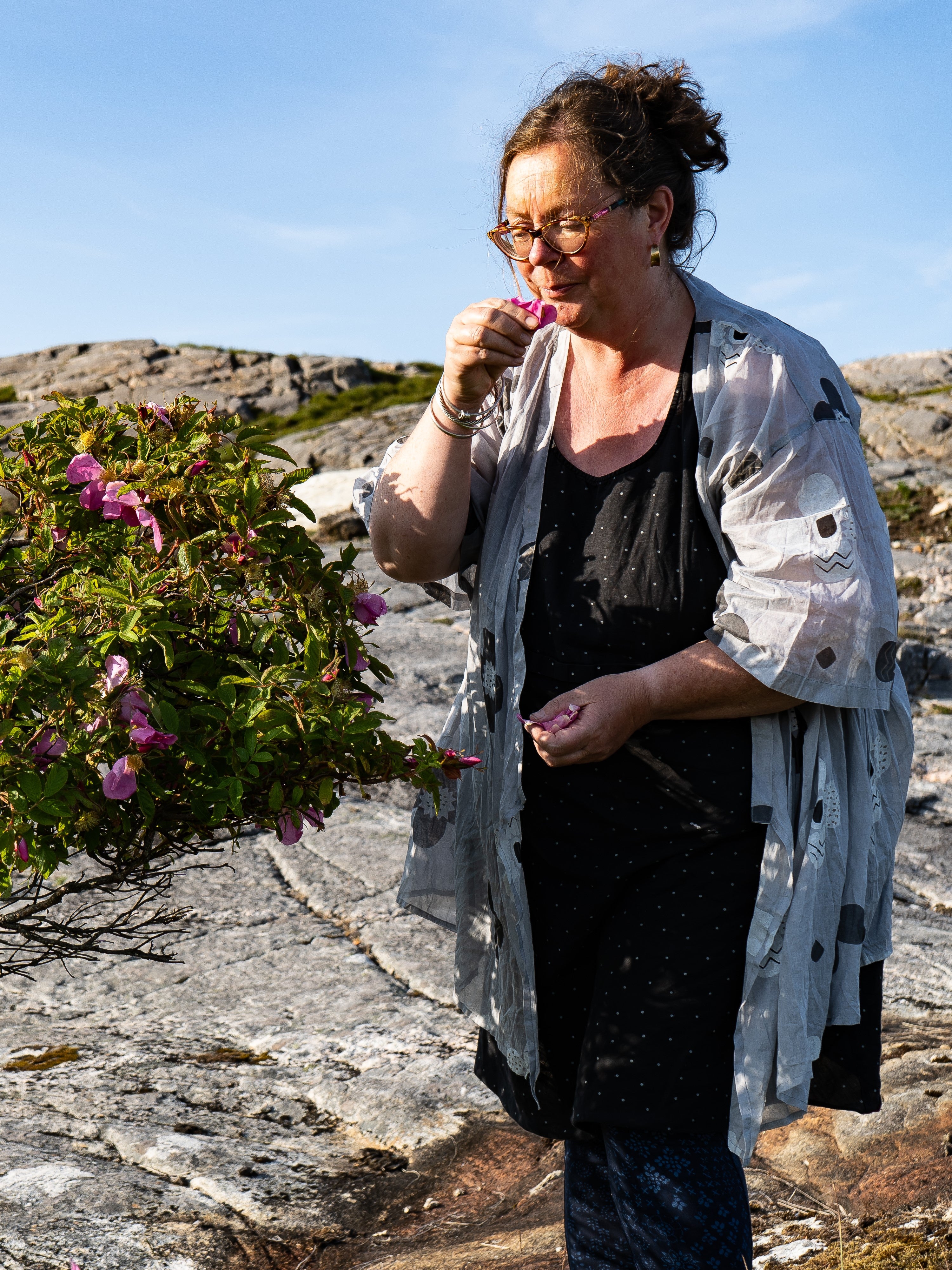 The Isle of Harris is part of the Outer Hebrides, it is an extraordinary place, windswept and seaswept with a tiny population of less than 2000. For me it is a treasure trove of medicinal plants, I walk the mountains and the machair meadows looking for plants, we grow 350 Roses on my croft alongside hundreds of other plants. I have the space to work with a 24m x 8m greenhouse and 6 acres of croft land. It is magical. I grew up in Edinburgh and remembered visiting the islands when I was 16 - it obviously left a lasting impression because when the Isle of Harris Distillery asked me to go up and develop both Harris based skincare for their shop and a Sugar Kelp Aromatic Water for their Gin, I leapt at the chance.