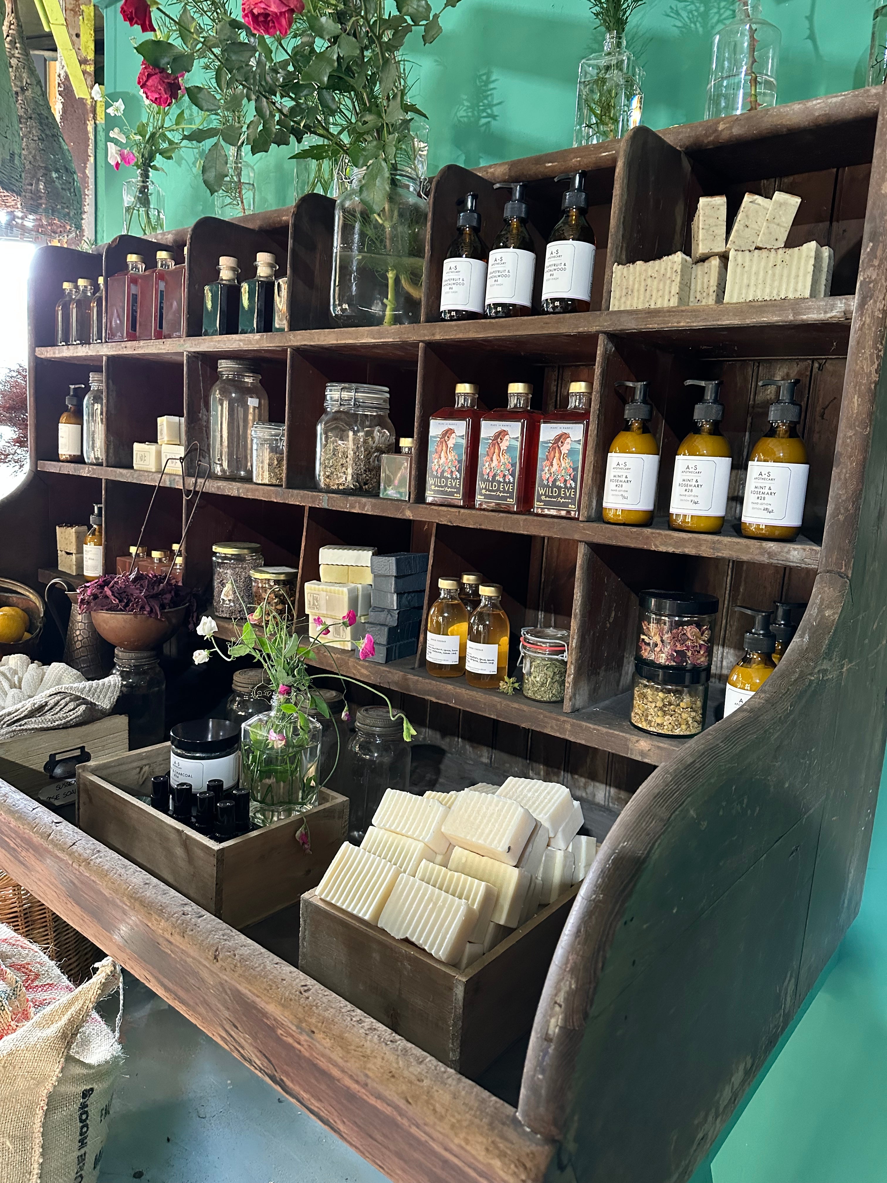 My background is in therapeutic plants - I’ve worked with plants for 40 years, growing and using them in my therapeutic practice. Temple Collective brings all my plant work together into a rather beautiful wellness brand. I’m a Homoeopath and specialist in mother tinctures, which are to support the different functions of the body. I’m also a producer of essential oils and aromatic waters, I have a skincare company A.S Apothecary which makes incredibly lovely, effective skincare and is now being used in Claridges Spa amongst others. I also make therapeutic tinctures, bitters, wild flower and seaweed teas and I roast speciality bean coffee. Wild Eve fits so well into the overall brand being both therapeutic, plant based and delicious.